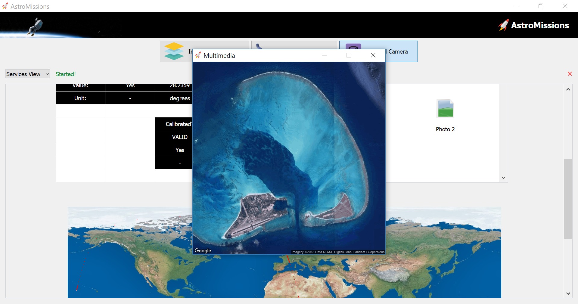 To take the photograph, you will have to execute sequentially the actions “Calibrate Camera”, “Set Zoom: 13” and “Take Photograph”. If you have done everything correctly, you should see the image of the second target, the Midway island.