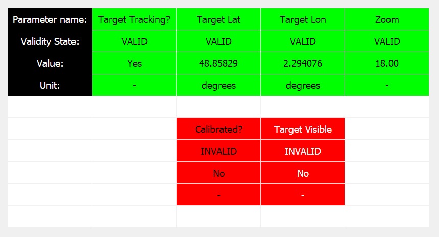 5. Go back to the “Ground Camera” instrument and you should be able to see the selected coordinates in the parameters’ dashboard: