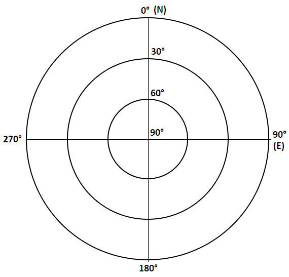 This coordinate system divides the sky into the upper hemisphere where objects are visible, and the lower hemisphere where objects cannot be seen since the Earth obstructs vision. Using the Elevation and Altitude, the satellites can be plotted on a two-dimensional projection like the one below.
